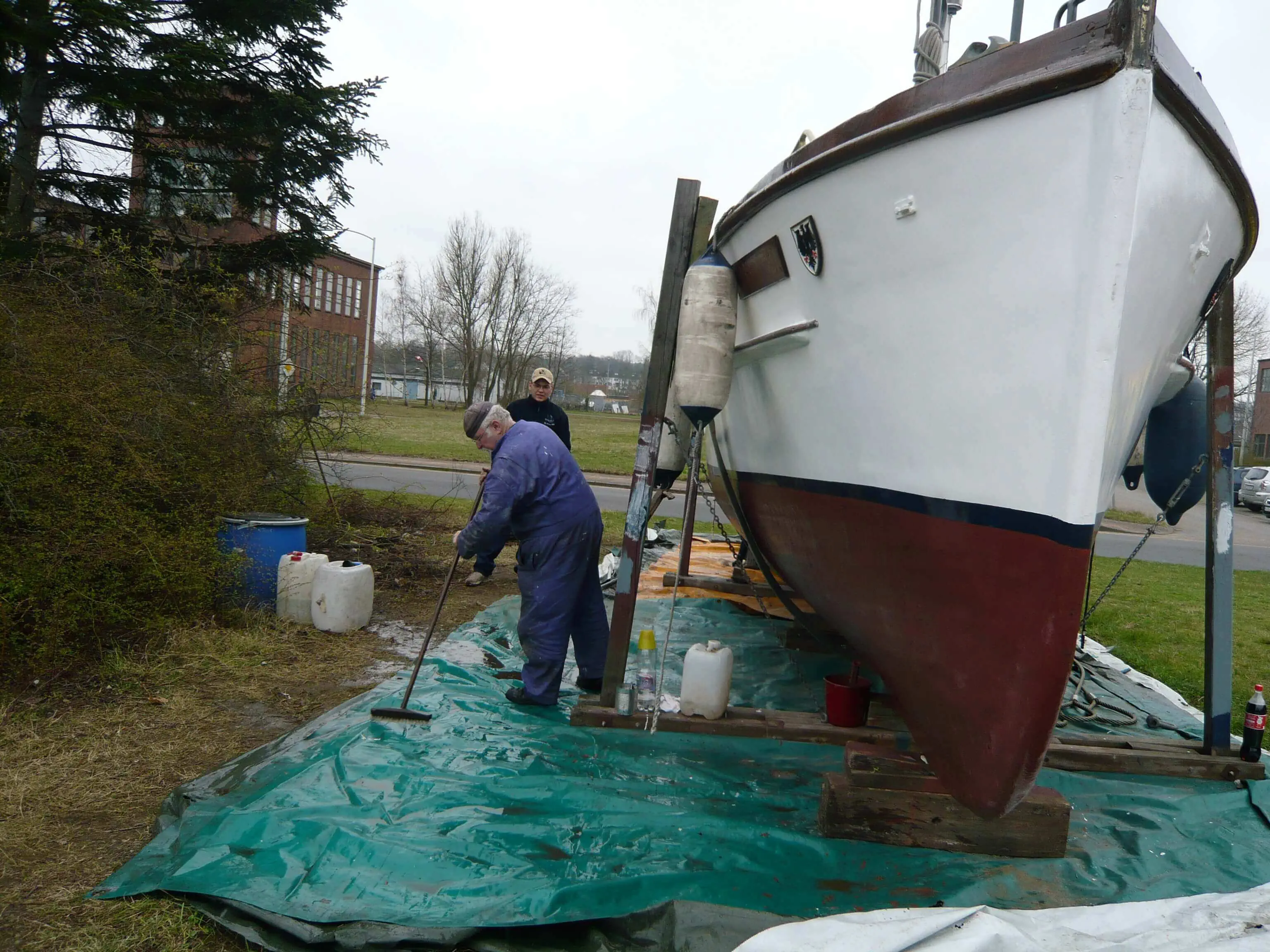 Auch der Zustand von Ralfs Freibeuter konnte über Winter weiter deutlich verbessert werden. Zusammen mit seinen Brüdern und Neffen wurden alle Bordauslässe und Pumpenanschlüsse, das Ruderblatt erneuert, sowie der Tank nebst Benzinleitung unter Deck verlegt. Aber auch in diesem Jahr musste wieder Mahagoniholz getauscht werden.