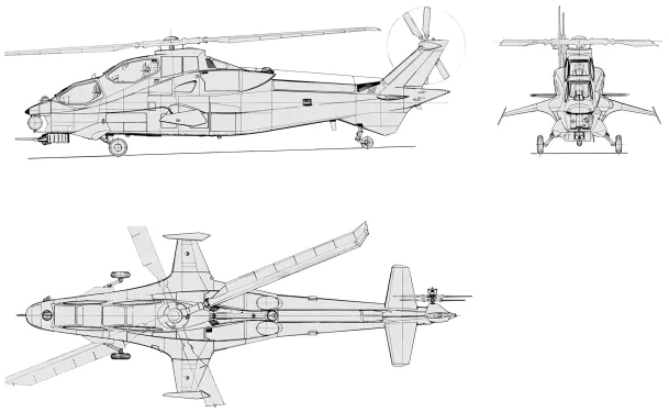 Der Z-10 hat eine Standard-Kampfhubschrauberkonfiguration mit einem schmalen Rumpf und abgestuften Tandem-Cockpit (der WSO sitzt vorne, der Pilot hinten). Der Rumpf hat abgeschrägte Seiten, um den Radarquerschnitt zu verringern. Alle lebenswichtigen Bereiche sollen durch Panzerplatten geschützt sein.