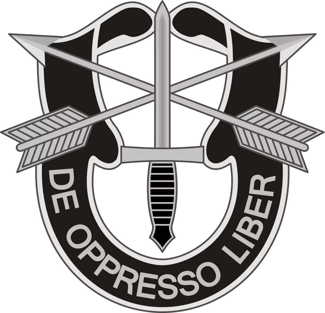 Der Wahlspruch der Einheit lautet De oppresso liber [Deutsch: vom Unterdrückten zum Freien].